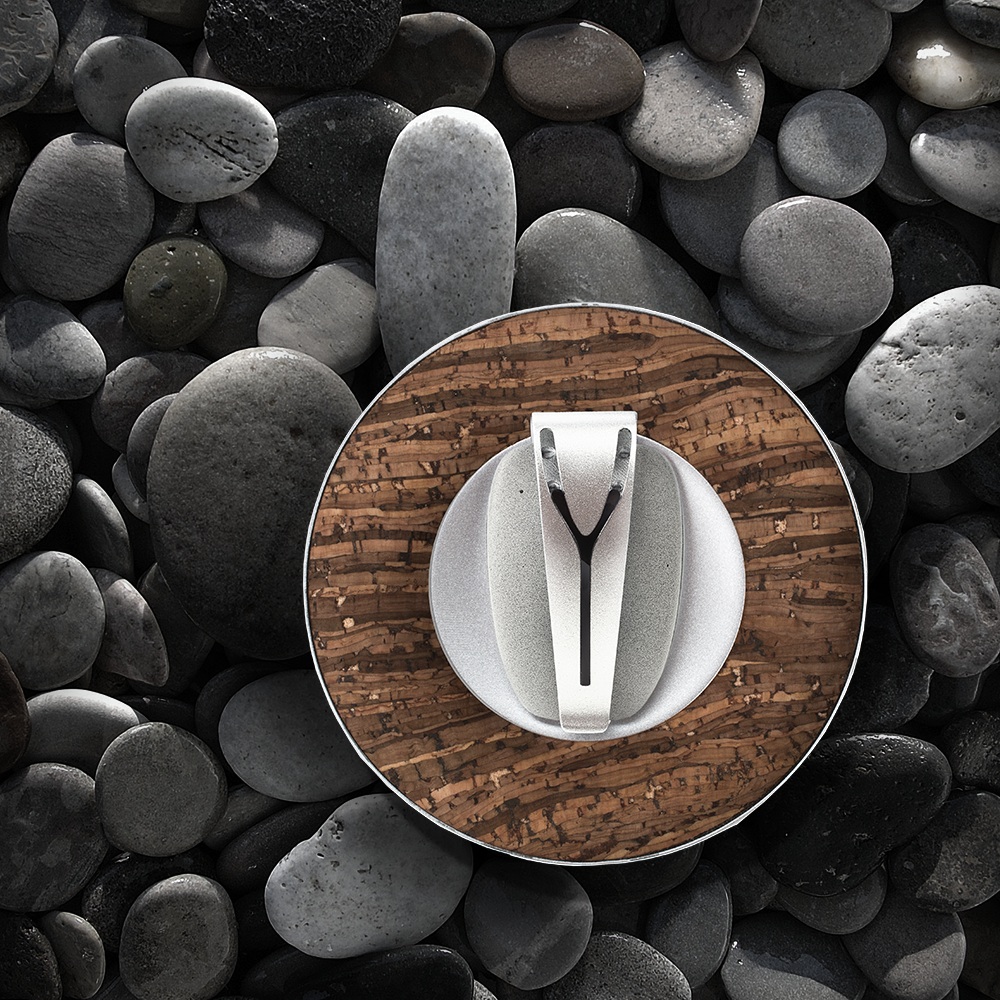 La charge de l’objet se fait par induction, via un petit plateau dont le design tient également à respecter le coté zen de l’objet, avec ses couleurs liège.